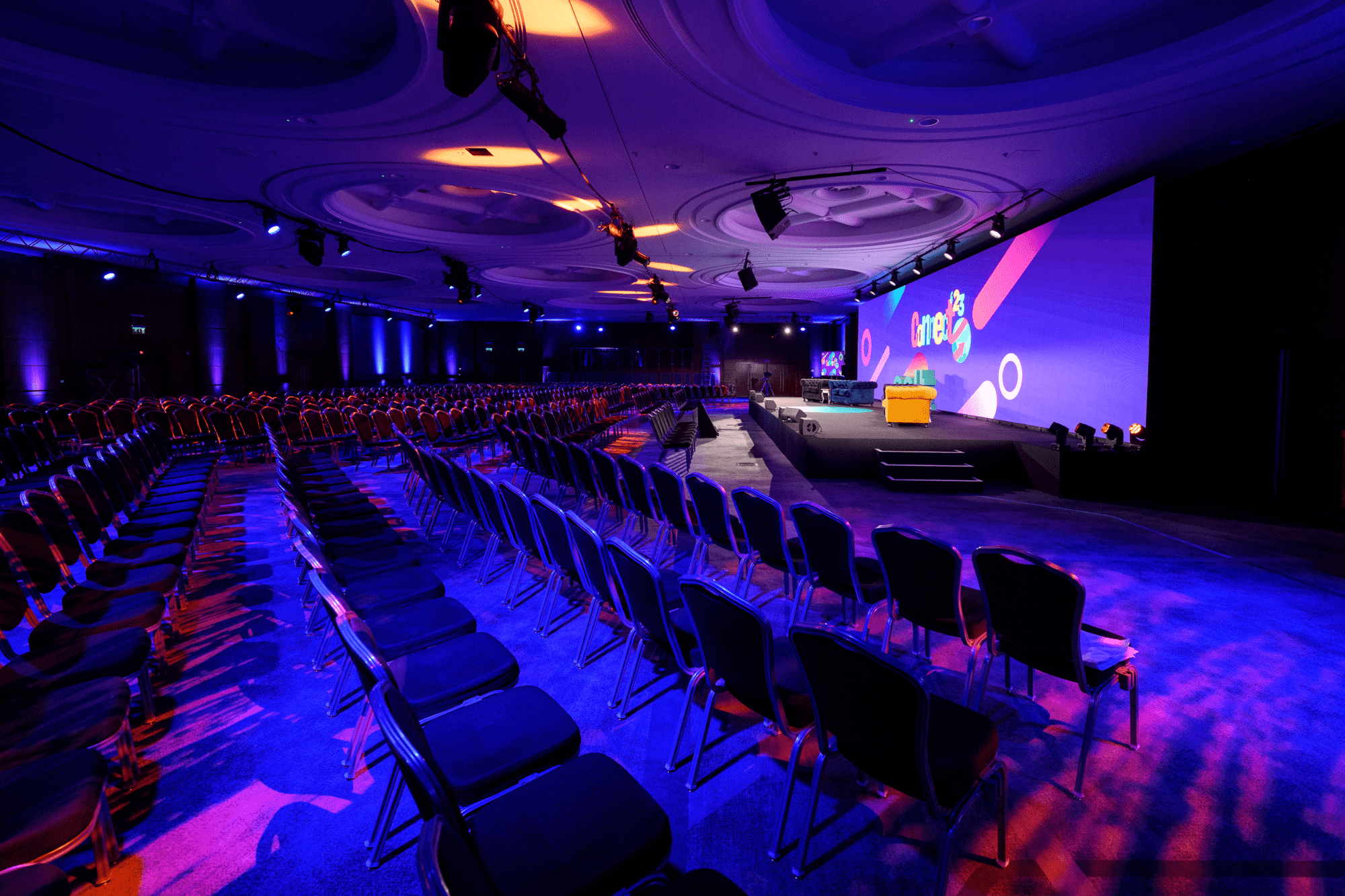 We have experience working in all major venues for large scale conference production and exhibitions, ensuring that your audience are fully immersed and engaged at all times. Working with JT Productions, we recently supplied, installed, and operated 1 x 15.5m x 3.5m, and 1 x 6m x 3.5m 2.6mm LED walls at the Hilton London Metropole hotel for their conference solution.Â