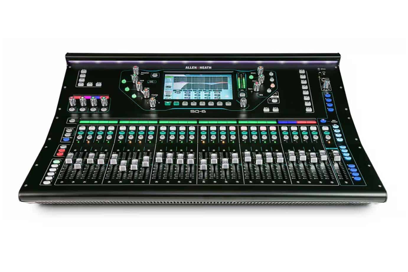 With each new design, the Allen & Heath team strives to get closer to the ultimate mixing experience. SQ’s dashboard is arranged around a high-resolution 7″ capacitive touchscreen, framed by a series of tactile and furthermore illuminated encoders, to create an intuitive, integrated blend of clear visual Feedback and immediate, hands-on control. Channels and mixes can be dragged and dropped onto any channel strip, with custom naming and color coding on the channel LCD displays, so you can create a mixing environment that reflects your own workflow. Each strip features the patented Chromatic channel metering system, which gives you instant level indication thanks to variable brightness and color LEDs.