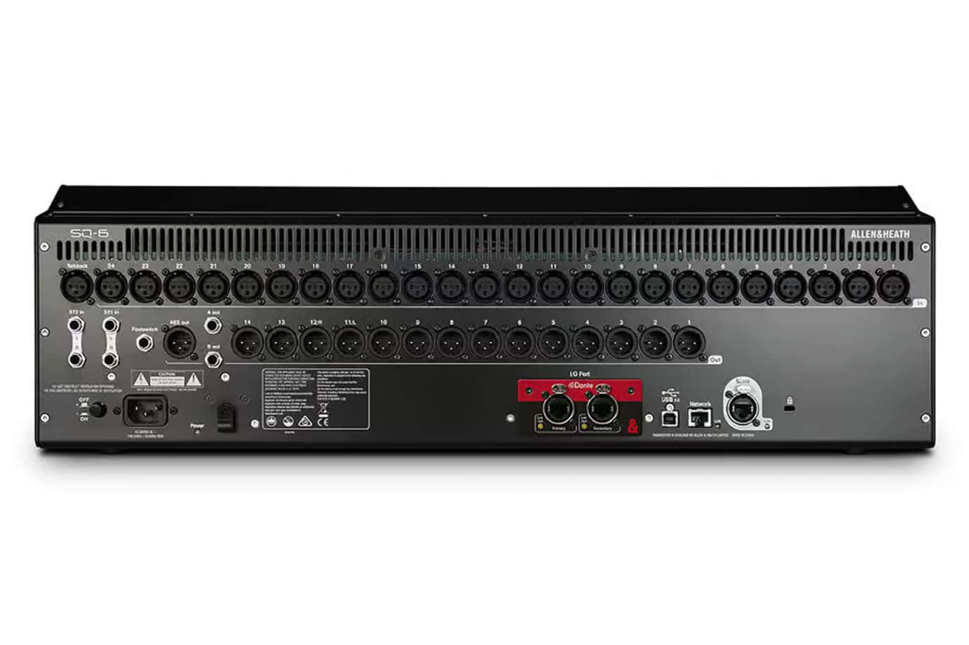 The SQ-6 has all the onboard inputs/outputs you need for standalone operation. Thanks to the intelligent SLink port, the SQ-6 can also be expanded to up to 48 microphone inputs via a wide range of 96 kHz and 48 kHz rack and stagebox expanders (e.g. AB168, AR2412, AR84 and DX168). This creates a Mix ‘n ‘match solution for owners of other Allen & Heath digital systems. You can also link your SQ directly to another SQ or even to a dLive system.