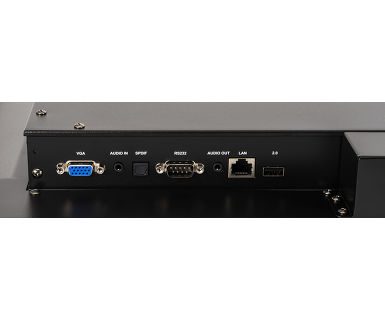 The high-quality commercial IPS LCD screen with 4K UHD resolution (3840×2160 – 8.3 megapixel), 350cd/m2 and a contrast ratio of 1200:1 provides vibrant, detailed and high-quality images from anywhere in the class- or meeting room. The anti-glare coating drastically reduces ambient reflection in high-brightness environments without compromising the sharpness and clarity of the image. The screen is equipped with an all-metal bezel and 3mm thick hardened glass to ensure long durability in high-use environments, such as classrooms or meeting rooms.