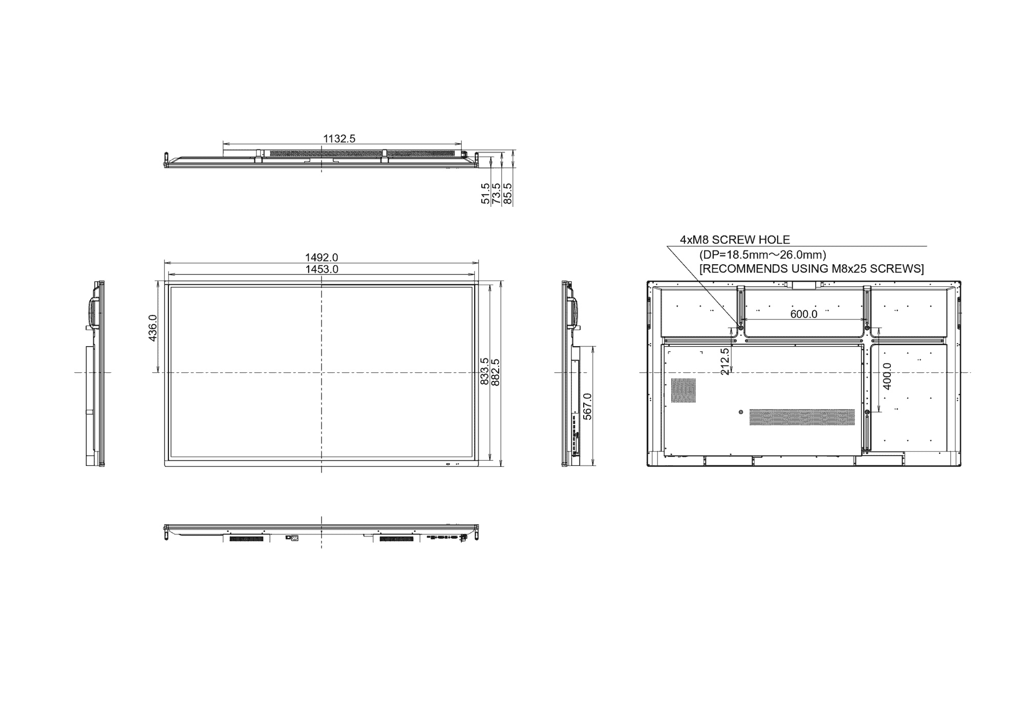 Viewable area W x H: 1430 x 806mm, 56.3 x 31.7″