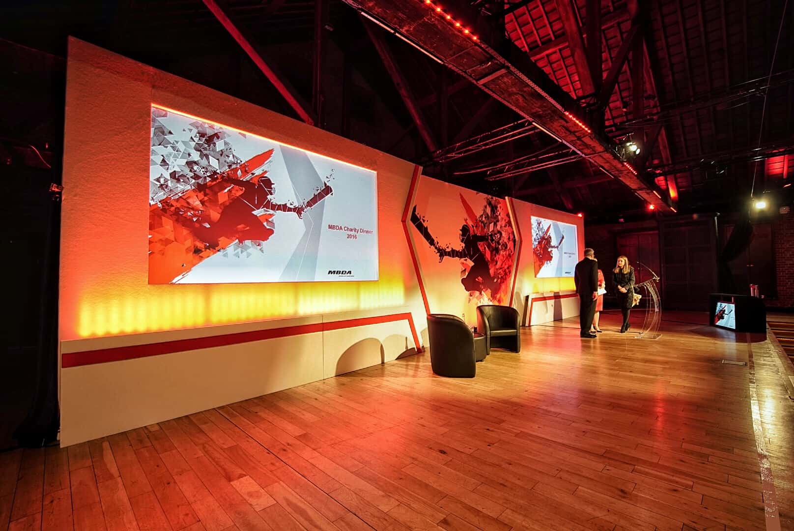 Projection is a versatile and cost effective alternative to LED video displays and can transform almost any surface into a branded visual experience. Perfect for quick installation schedules, break out rooms and smaller meeting rooms.